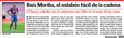 Thursday’s edition of AS explains offers from the top European clubs are raining down for the Guinean, but they only name Thomas Tuchel’s side and Leipzig. They add Moriba is currently out of the dynamics of Barca’s first team.