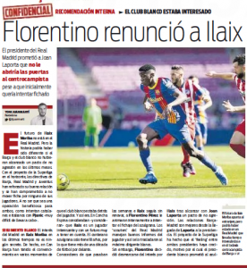 Real Madrid were credited with an interest, but a ‘confidential’ report from Sport says Los Blancos will not make an approach for the player due to the ‘non-aggression pact’ agreed between Joan Laporta and Florentino Pérez in recent months.