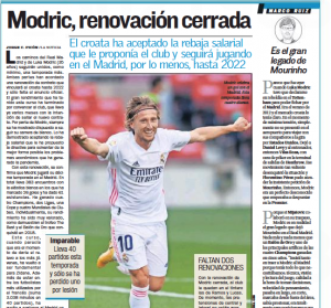 Thursday’s edition of AS brings something positive which Mourinho left at Real Madrid… and that’s is Luka Modric.
