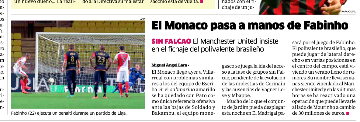 Villarreal have the first leg at home, and Marca have gone through Monaco’s squad to pick out some interesting snippets. One of the articles within the spread is about Fabinho, and Manchester United wanting to sign the player.