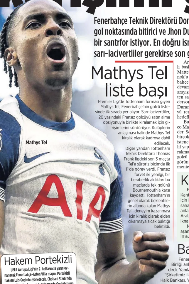 Milliyet report Fenerbahçe are working to give Tel the opportunity to escape his problems at Tottenham, and are in talks over a deal.
