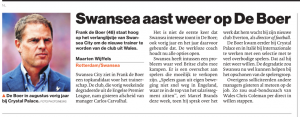 De Boer lost his job at Inter and Palace because he had players that didn’t fit his system, and the Dutch newspaper say the squads were overloaded with unsuitable players who were too hard to sell.
