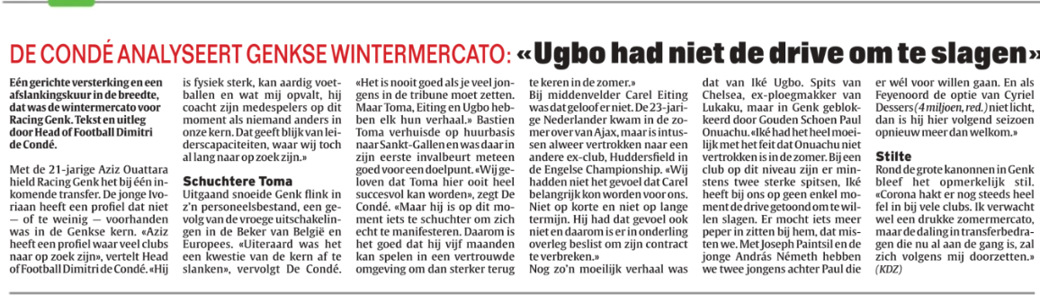 “We did not have the feeling that Carel could become important to us. Not in the short and not in the long term. He did not have that feeling either and that is why it was decided in mutual consultation to terminate his contract,” De Condé told Het Laatste Nieuws.