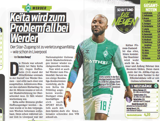 Werder Bremen are becoming increasingly concerned about their decision to sign Naby Keita from Liverpool this summer with the player ‘becoming a problem’ for the club.