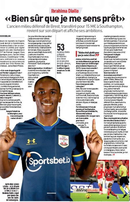 Diallo initially considered continuing at Brest despite interest from the south coast club. The player details what convinced him to change his mind and join the Saints.