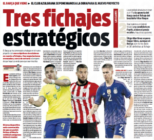 If Barca fail to sign Martínez, Manchester City’s Aymeric Laporte has been identified as the backup option.