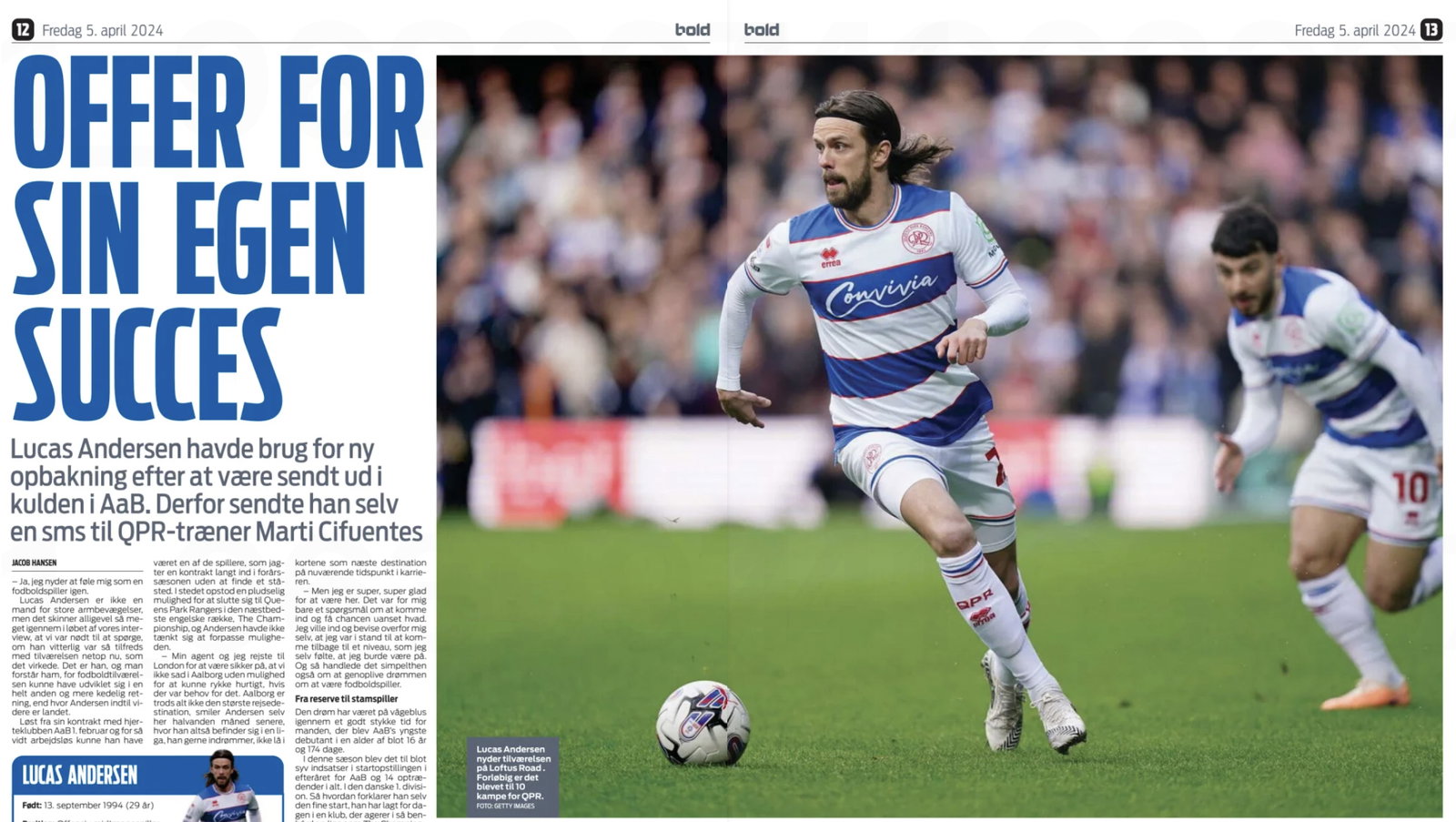 Once a budding talent at Ajax Amsterdam between 2012 and 2016, Lucas Andersen then returned to Denmark via Switzerland, where he was released by Aalborg BK in February, only to be picked up by Queens Park Rangers.