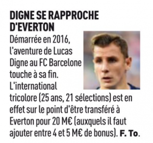 Sunday’s edition of L’Equipe states Digne is ‘about to be transferred’ to Everton, and they say he’ll be moving for €20m plus a bonus which is worth €4-5m. His Barcelona