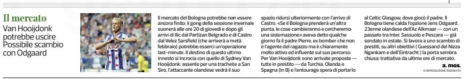 That’s what’s happening, as the Italians are in the process of securing the services of Santiago Castro from Vélez Sarsfield, and Corriere di Bologna believe a move to Celtic is being worked on for the Dutch forward.