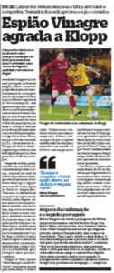 As the newspaper starts their big coverage for Porto’s Champions League clash against Liverpool, they are interviewing Portuguese players who play in the Premier League, and Vinagre is one of them.