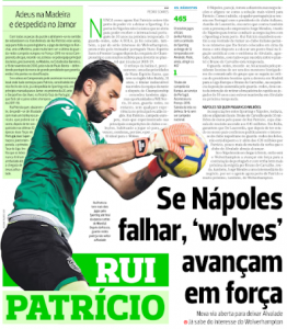 It didn’t take much time for Wolverhampton Wanderers’ chase for Rui Patrício to become a big deal in the Portuguese press.