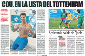 Tuesday’s edition of Mundo Deportivo covers a possible transfer, and explains that the player’s agent, Kia Joorabchian, is working in the background. Tottenham is the main club linked, but the Catalan newspaper insists Liverpool are also interested.