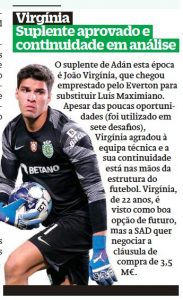 When negotiating the loan, Everton and Sporting agreed to a clause for a permanent move worth €3.5m. So, at least in theory, the decision to buy Virgínia was supposed to be in the hands of the Portuguese club.
