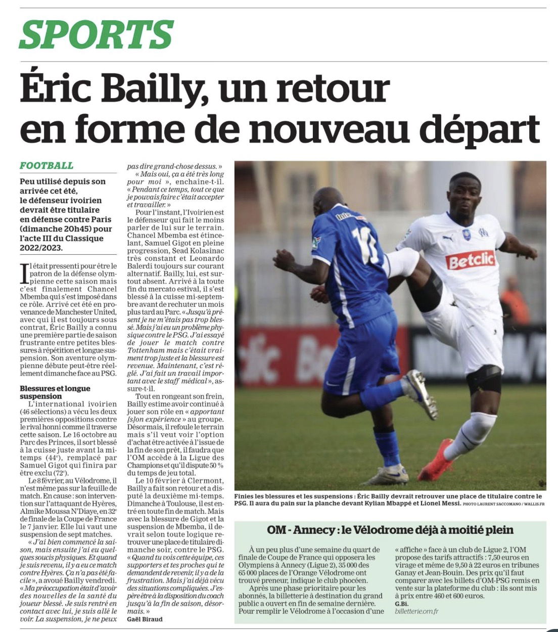 Over the course of his time at Manchester United, Éric Bailly has struggled with injuries, and that has continued during his loan spell at Marseille.