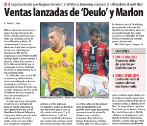Watford are keen on securing Deulofeu’s signature on a permanent deal, while West Ham United have shown interest in bringing Marlon to the English capital club. Today’s edition of the Catalan newspaper Mundo Deportivo claims both deals are close to being completed.