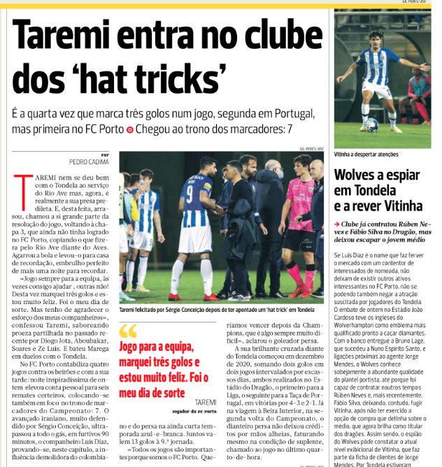 The 29-year-old forward scored a hat-trick, and thus all of Porto’s goals in the victory.