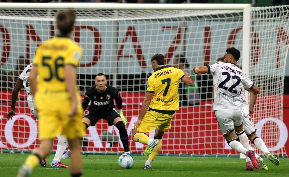during the Serie A AC MILAN v BOLOGNA FC at San Siro Stadium.