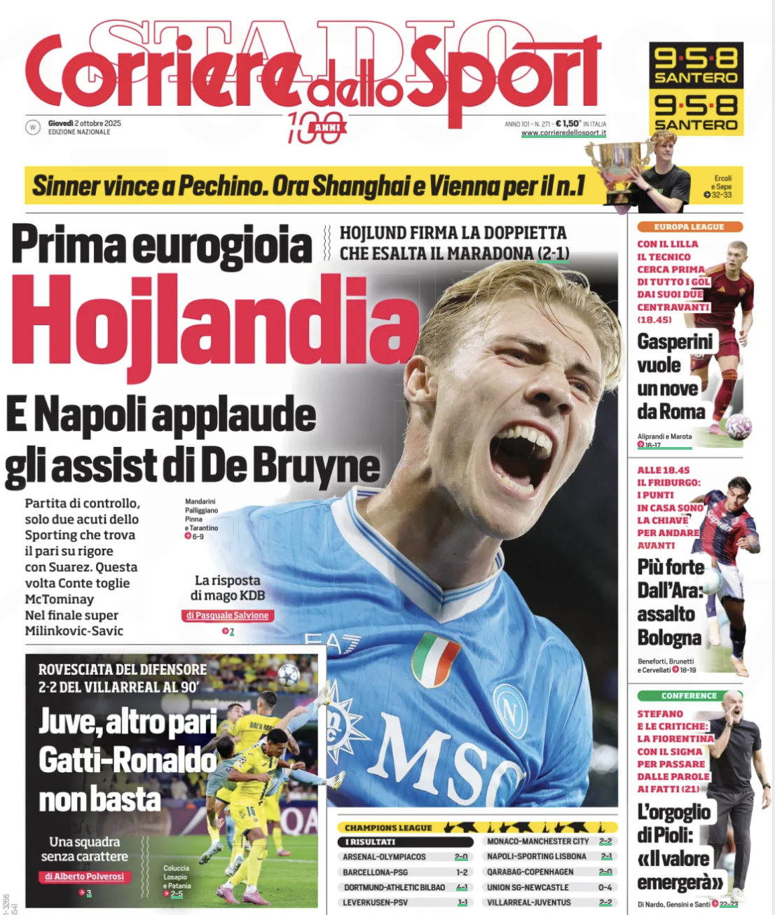 Thursday’s edition of Corriere dello Sport has Rasmus Højlund splashed across the front page with the word HOJLANDIA shouting out.