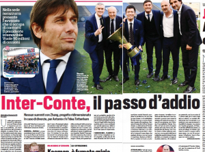 Gazzetta dello Sport‘s Wednesday edition has ‘DIVORCED’ splashed across the front page, with the newspaper believing Antonio Conte and Inter Milan will be parting ways, despite the club winning Serie A.