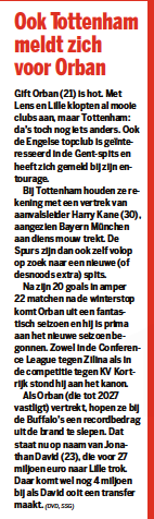 According to Het Nieuwsblad, Gent would need a club-record fee to sanction Orban’s sale. The current record is held by Jonthan David, who was sold to Lille for €27m in 2020.