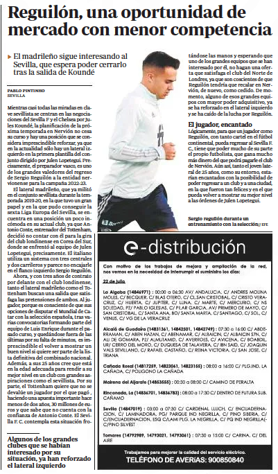 Reguilón spent the 2019/20 season on loan at the Estadio Ramón Sánchez Pizjuán. For his part, he would be ‘delighted’ to return to Sevilla.