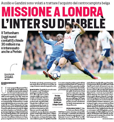 On Wednesday, we covered an article in Corriere dello Sport regarding Inter’s interest in Tottenham’s Mousa Dembélé, and their claim that Piero Ausilio, the Serie A side’s director of football, would be travelling ‘in the coming days’ to try and sort a transfer out.
