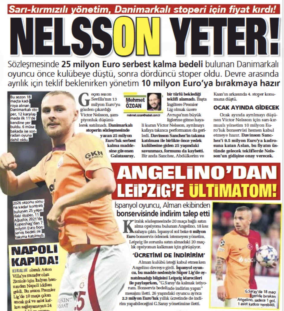 However, with the departure of Davinson Sánchez, another deal was being sought, as Galatasaray were willing to let Victor Nelsson if his release clause of €25m was triggered.