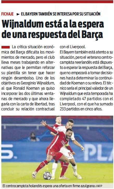 Barca will have an advantage in signing the Netherlands international because he can join them on a free transfer, which suggests he will be leaving Anfield in the summer.