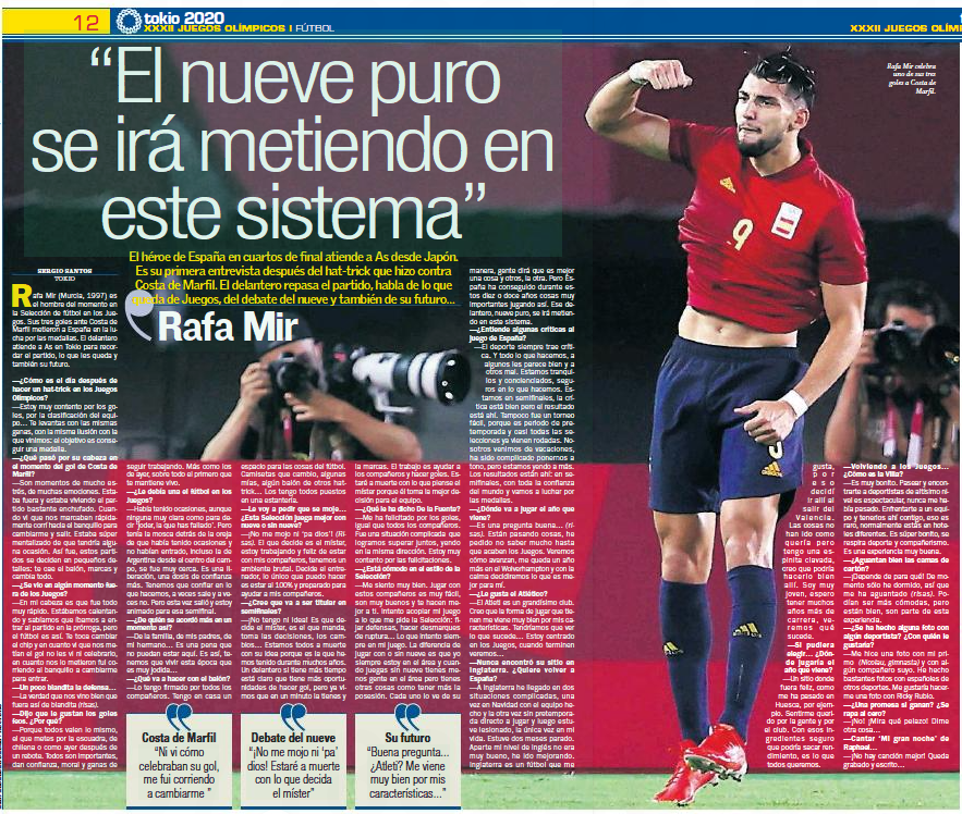 Wolverhampton Wanderers’ Rafa Mir is preparing for Spain’s semi-final clash against Japan at the Tokyo Olympic Games on Tuesday.
