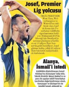 According to claim in the Turkish media, West Ham United are still showing an interest in Fenerbahce midfielder Josef de Souza.