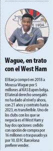 He claims the Spanish giants are negotiating with West Ham for the fullback’s transfer, and there are two options to take Wagué.