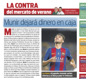 So much so that all three clubs are prepared to pay €8-10m to get the player, who spent last season on loan at Valencia. Barcelona want to receive €14m, and Zenit have already offered more than this, in a brash Russian kind of way, but Munir doesn’t fancy the move.
