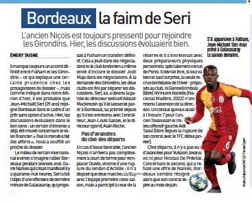 On January 28th, L’Equipe reported Fulham’s Jean Michaël Seri has been a priority target for Bordeaux after Otávio suffered a serious injury.
