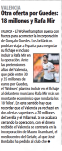 Gonçalo Guedes has been on Wolves’ agenda and they could offer Mir plus money to Valencia in exchange for the winger, reports Mundo Deportivo.