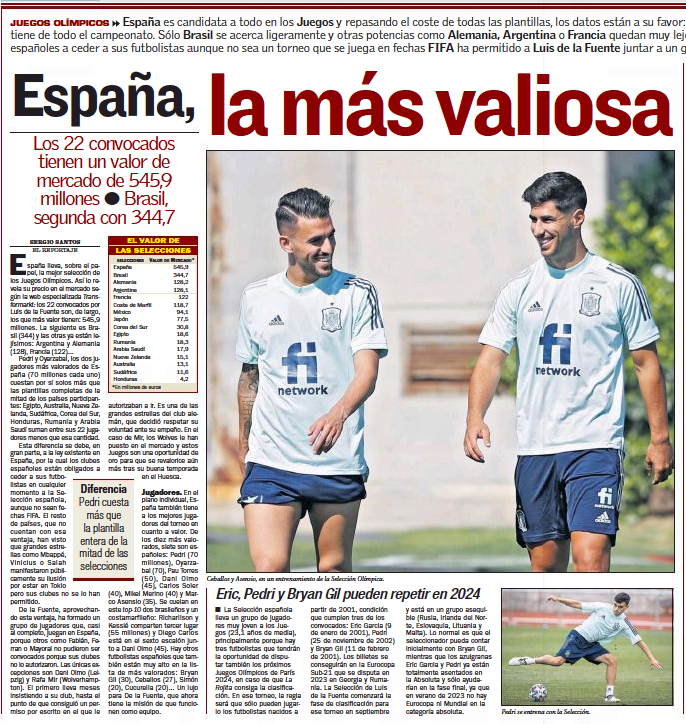 AS on Thursday explain the squad selected by De La Fuente has the highest market value when compared to other nations.