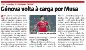 Musa has 23 appearances for Benfica this season, with six goals and two assists, but with the arrival of Marcos Leonardo from Santos this month, he’s expected to get less playing time.